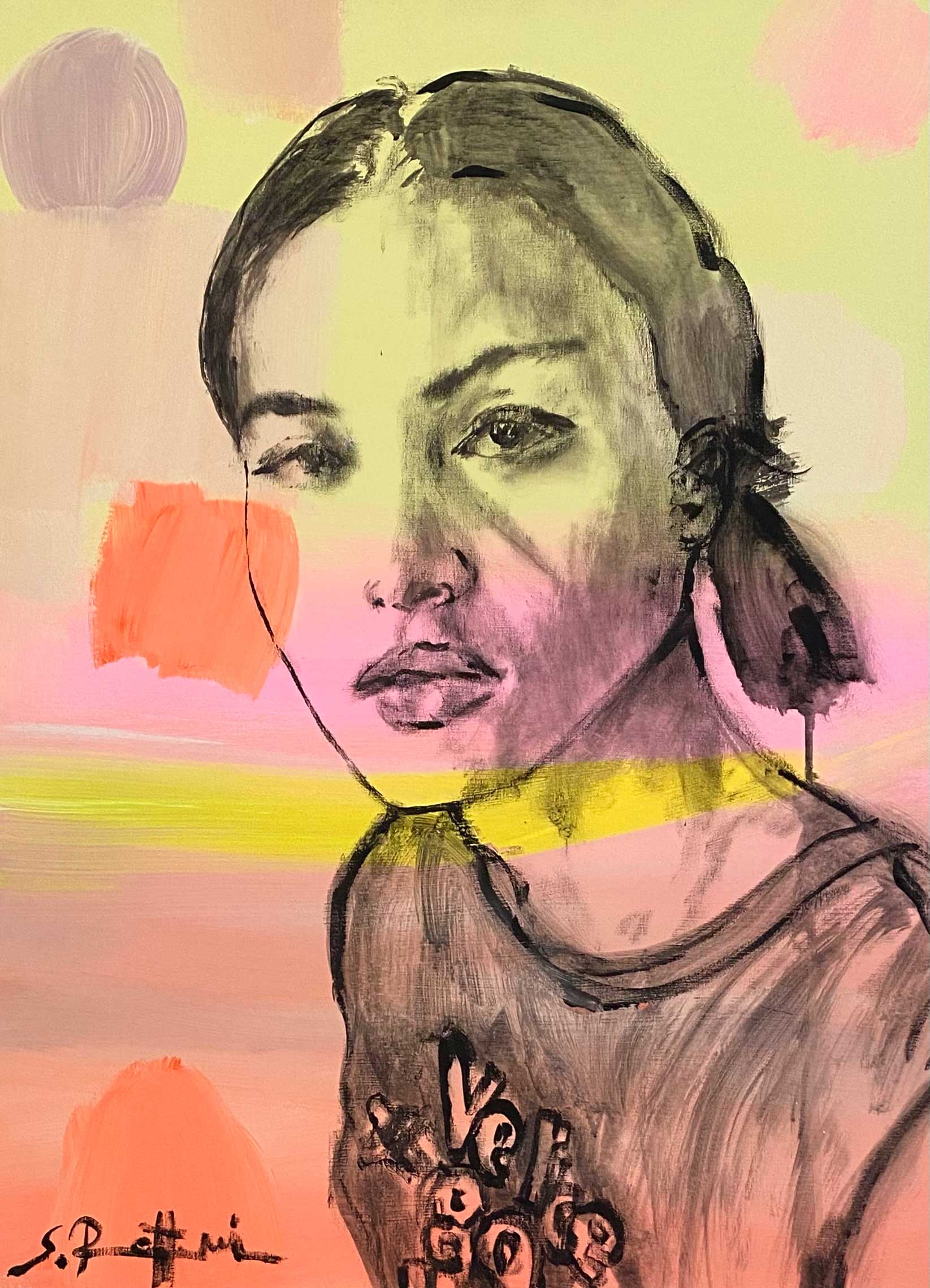 Frauen Porträt mit einer Leichtigkeit und Präsenz. In zarten Farben gemalt.
