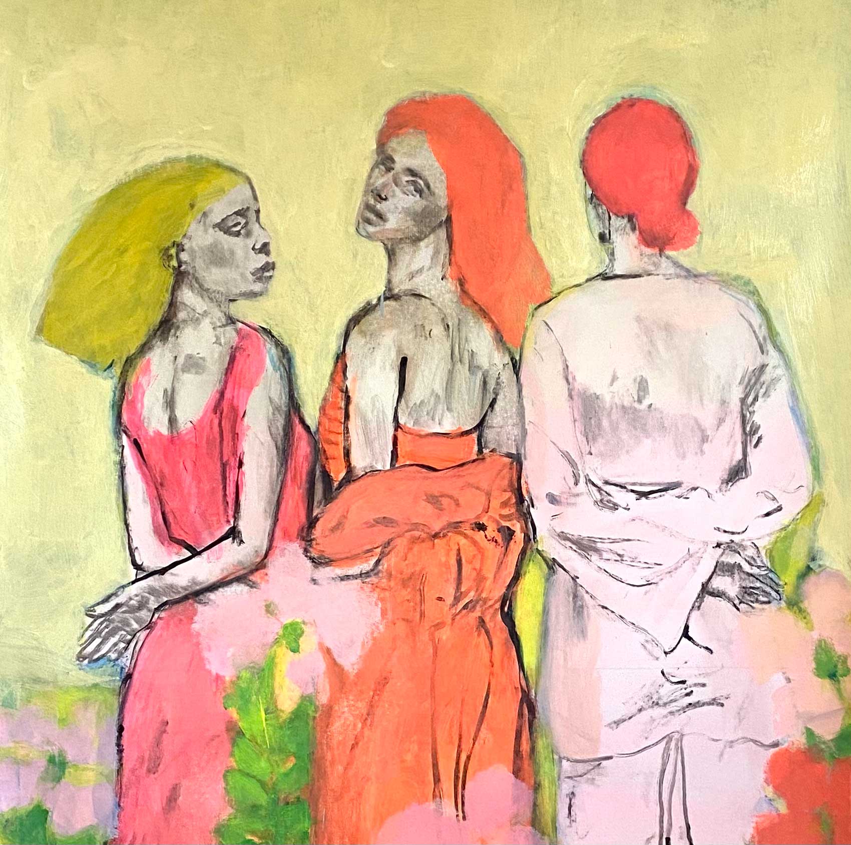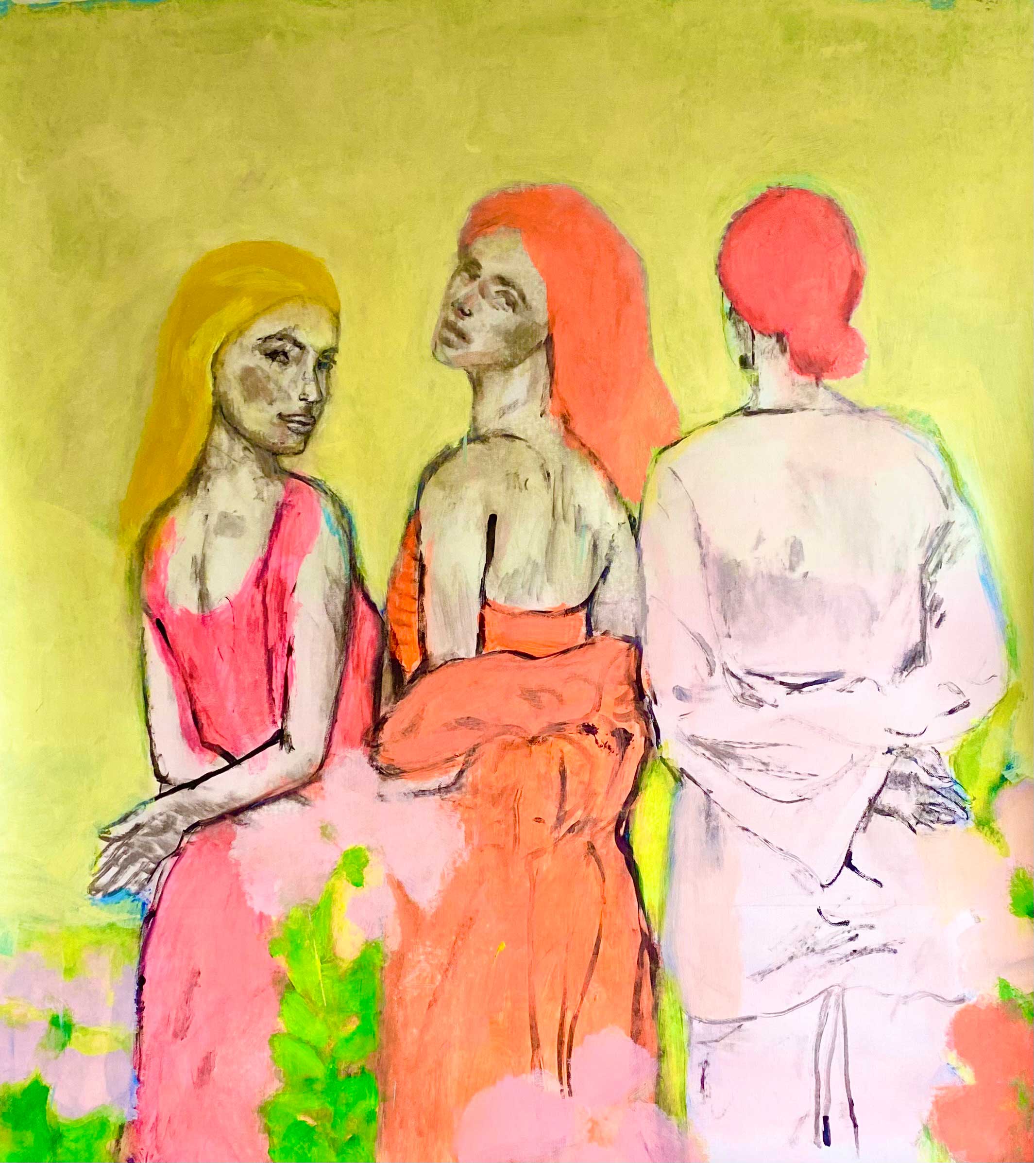 Habe Ihr Bild in einer Kanzlei in Ludwigsburg entdeckt und war sofort begeistert von den 5 bunt gekleideten Tänzerinnen, die sich mit anmutig erhoben Armen dynamisch voller Lebensfreude tanzend bewegen.